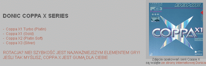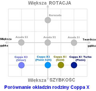 odpowiada charakterystyka aktualnych nakierowanych na rotację okładzin naprężonych takich, jak seria Tenergy lub niemieckie TENSORy od drugiej połowy 2009 r., seria Coppa X może stanowić rozwiązanie.
