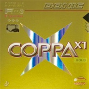 Coppa X1 (Gold) została wypuszczona na rynek w połowie 2010 r. razem z Coppa X1 (Platin) Turbo, Coppa X2, Coppa X3 i serią Acuda S. Seria Coppa X jest nakierowaną na rotację okładziną naprężoną całkowicie nowej koncepcji - typu "szybkiego. Ten nowy typ zupełnie różni sie od typów "ekstremalnego" (toracja) lub "pośredniego" innych nakierowanych na rotację okładzin naprężonych.